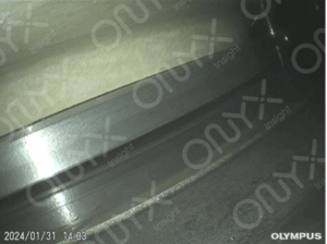 Photo 3: Some journal gearboxes have an oil supply passageway that provides borescope access to the middle of the journal. The upwind side of the planet pins have a hollow center that scoops oil from the sump to gravity feed the journals during grid outages; a fail-safe design feature. Once the borescope is at the passive port look for fine copper debris or wear markings on the planet gear bore.
